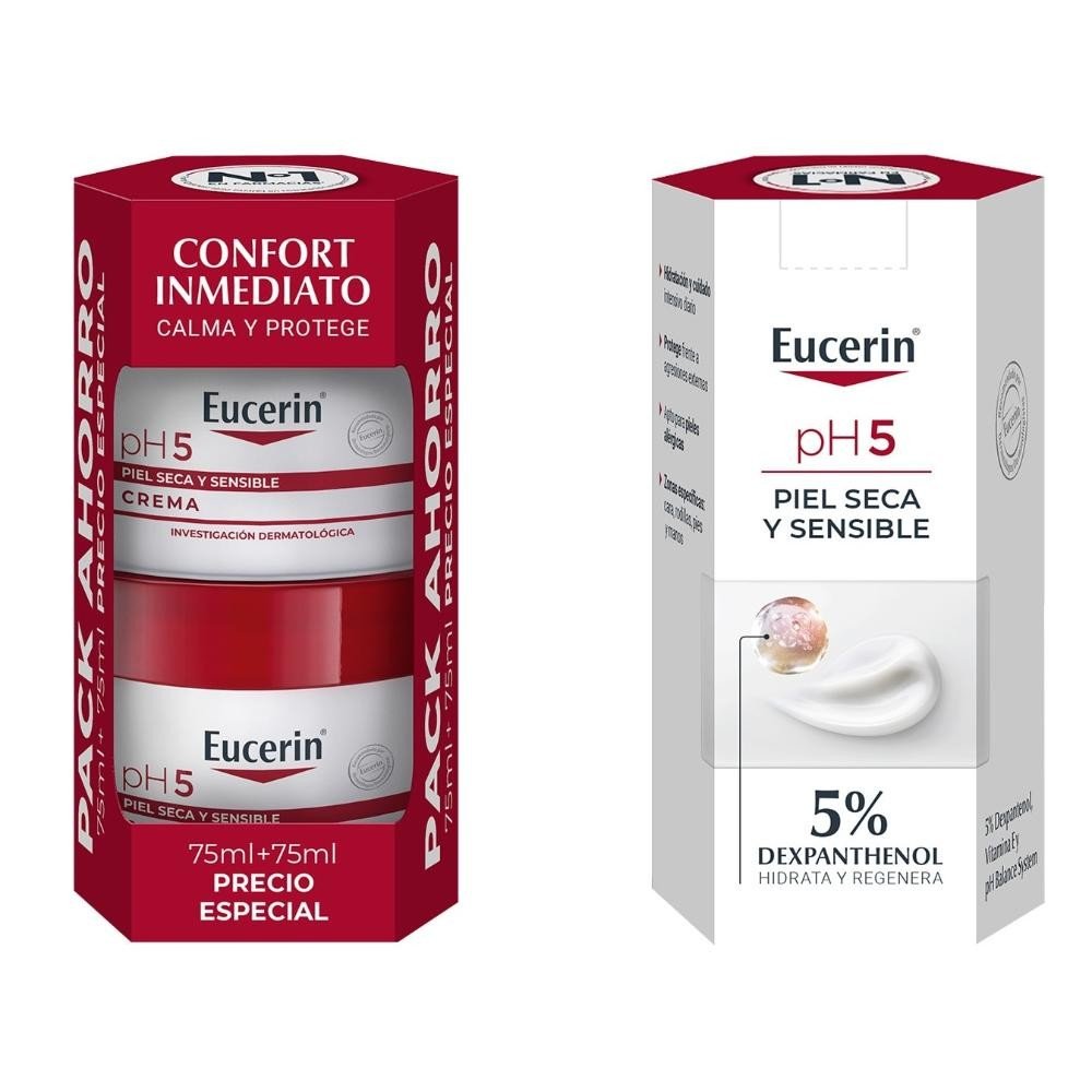 Eucerin pH5 Skin-Protection Crema se ha desarrollado específicamente para la piel corporal sensible y piel facial sensible. La fórmula contiene dexpantenol, un ingrediente activo que estimula la regeneración de la piel y fortalece la barrera protectora de la piel. Defiende la piel frente a la irritación, ayuda a restaurar los niveles de pH y repone las reservas de hidratantes de la propia piel hasta 24 horas. Utilizar diariamente para la protección duradera y para conseguir una piel suave y lisa.